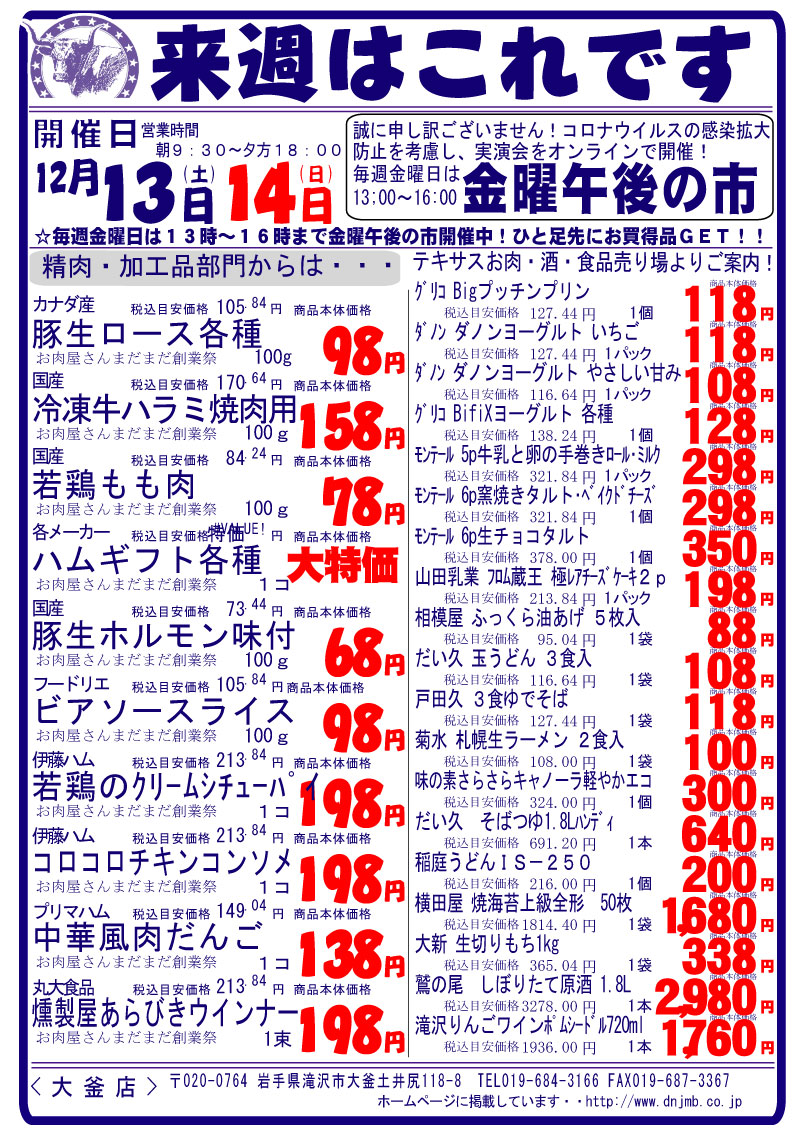 - 2025/12/13(土)~12/14(日) 来週はこれです。チラシ掲載可能品