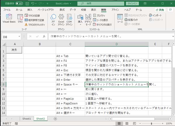 ‘Sheetの消去(簡単な消去の方法)