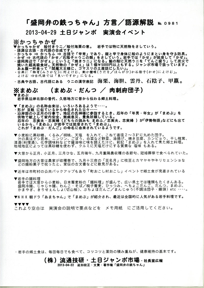 不思議な岩手の料理のひとつ・・。 大野村や山形村(現在久慈市山形町)で伝わる伝統料理。 以前「松茸を採らせてあげる・・から遊びに来て!! 」という事で、山形村、荷軽部の谷地さんのお宅にお邪魔した時・・。 最初は醤油仕立ての汁の中に、黒砂糖の味が違和感を感じたが・・食べ続けていくうちに、その黒砂糖を選んで食べている。結局合うんですね。 その時、御馳走してくれた、谷地さんのお婆さんから 、「これはなっす、汁の様に見えますが、汁でないんでがんす!」という話がず~と頭にこびりついていた。今回まめぶのレシピをみていて・・お祝いや不祝儀のときの「つぼ」として使われていた・・。という言葉が掲載されており、この「つぼ」とは??という事で調べてみたら、精進料理の二汁五菜のひとつという事を発見!!。