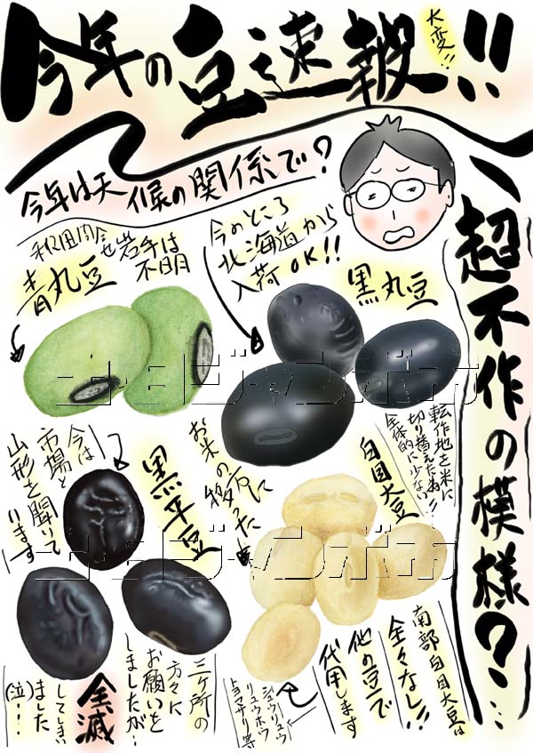県産の豆が苦戦しそうです。