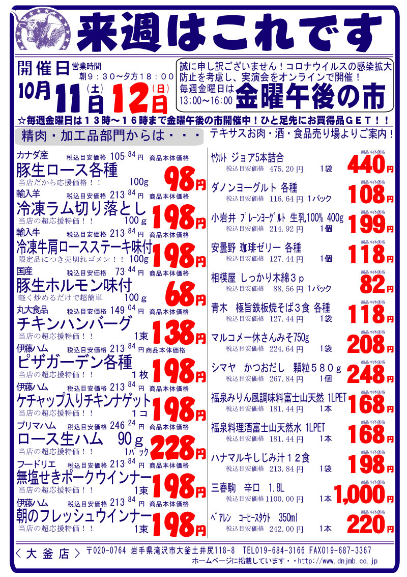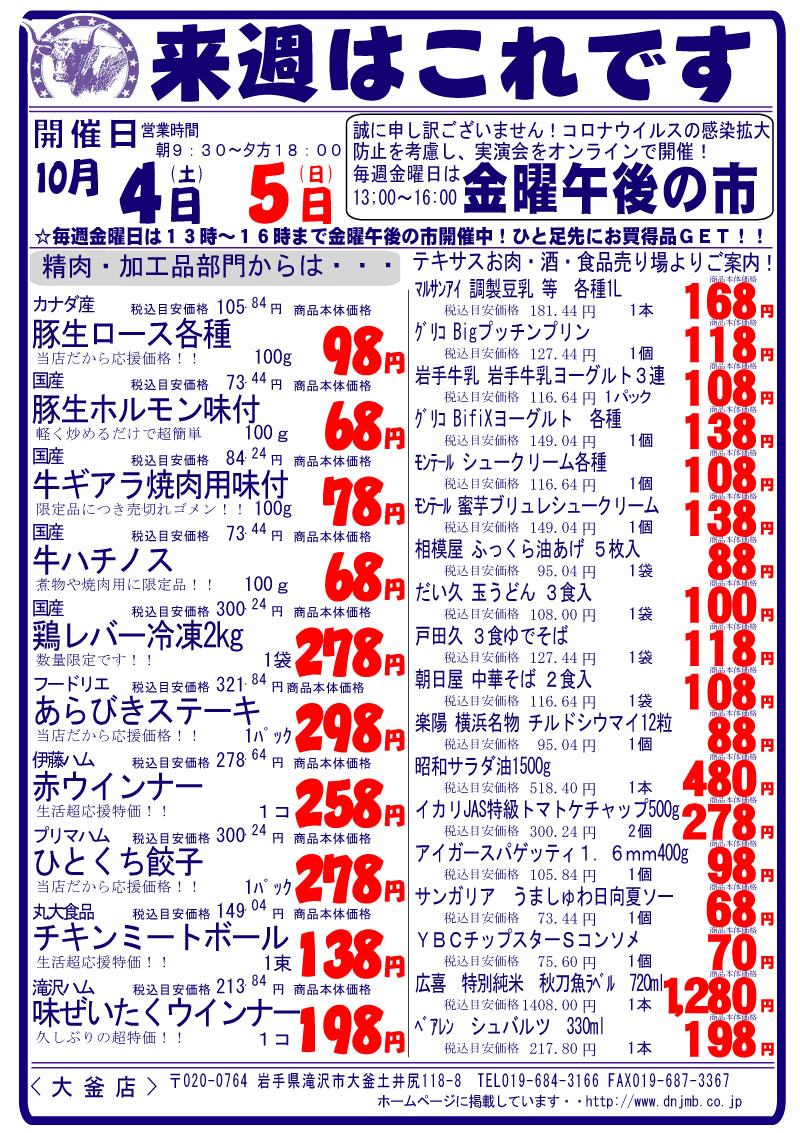 - 2025/10/04(土)~10/05(日) 来週はこれです。チラシ掲載可能品