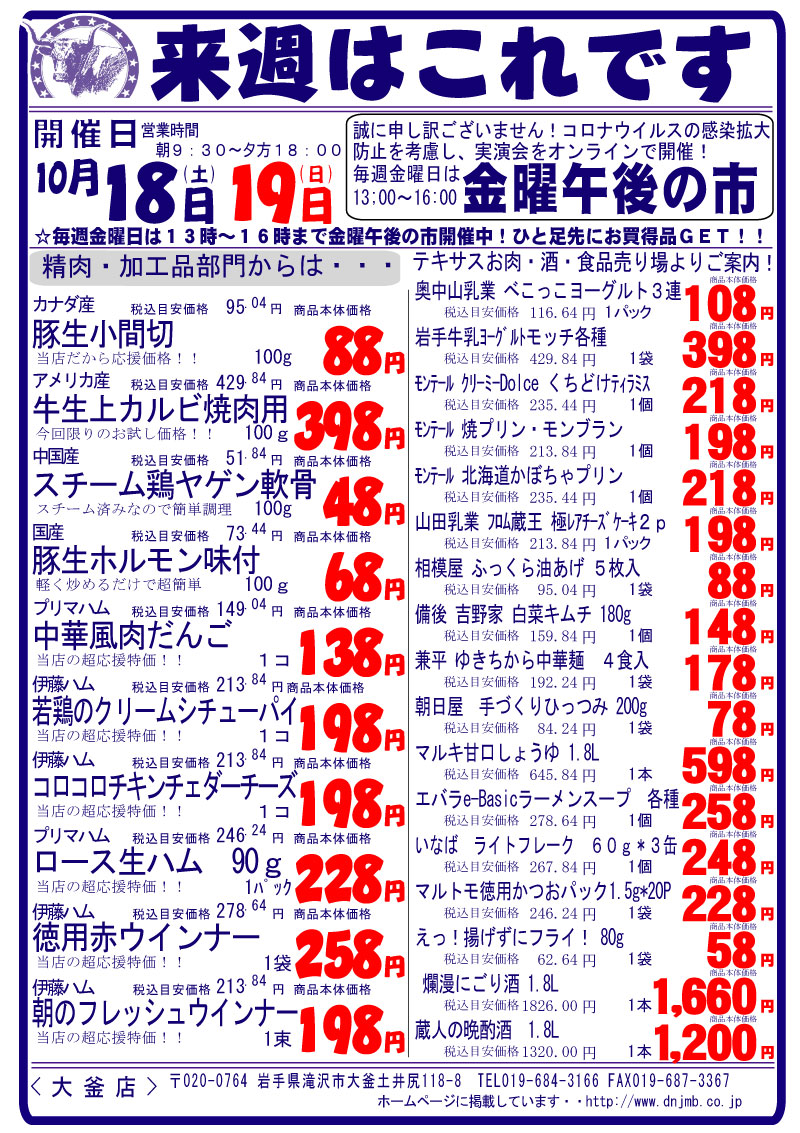 - 2025/10/18(土)~10/19(日) 来週はこれです。チラシ掲載可能品