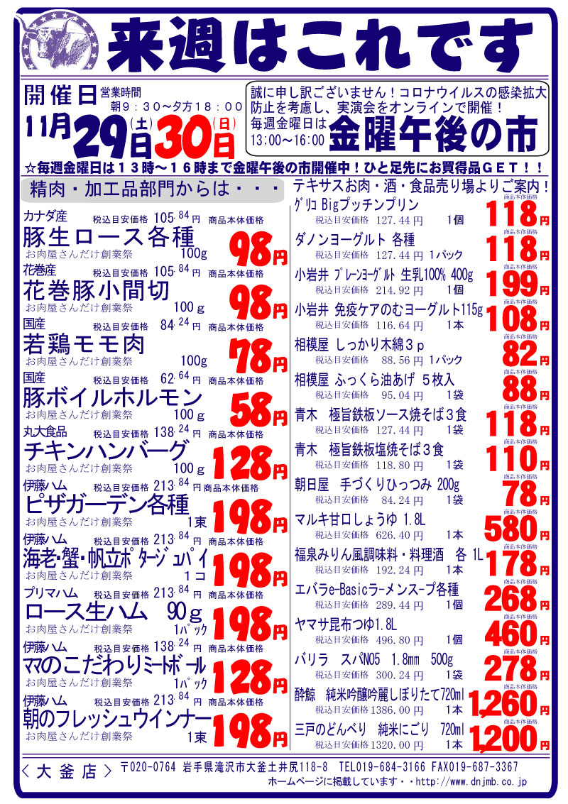 - 2025/11/01(土)~11/26(日) 来週はこれです。チラシ掲載可能品