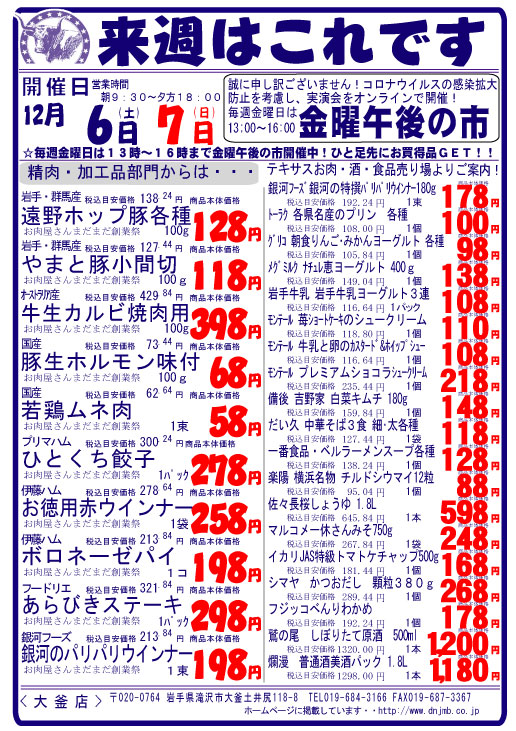- 2025/12/06(土)~12/07(日) 来週はこれです。チラシ掲載可能品