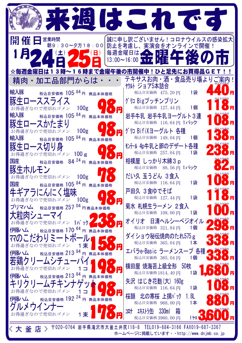 - 2026/01/24(土)~01/25(日) 来週はこれです。チラシ掲載可能品